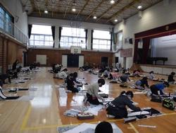 体育館を使って、大きな半紙に集中して書いていました。