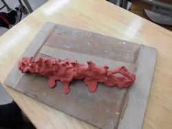 自分の考えた「グアナコ」を粘土を使って表現しました。