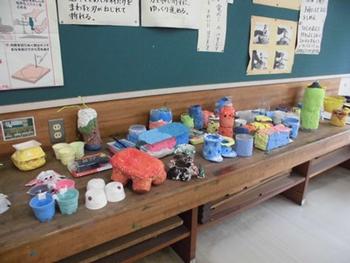 ペットボトルなどの空き容器に色付けした紙粘土をつけたら、、、