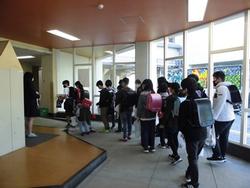 蒔田中学校に到着。生徒会の生徒が案内や説明をしてくれます。