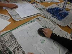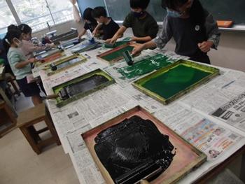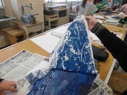 作った版にインクをつけて、和紙に写し取って作品を仕上げました。