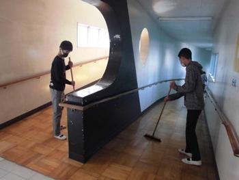 少人数に分かれて、お世話になった学校をきれいにしていました。