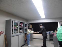 1年間外国語を教えてくれた先生に感謝の手紙とお花を渡しました。