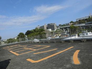 屋上の「南太田小」の表示をおやじの会のみなさんが