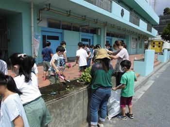 学校の花壇をフラワーボランティアさんと整備しました。