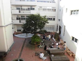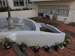 中庭が華やかになりました。左側の写真をよく見ると・・・