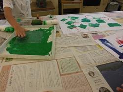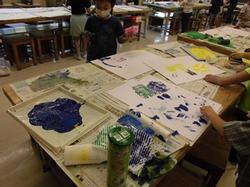 身の回りの材料にインクをつけて、紙にペタッと押してみたり、