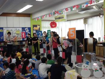 7月23日(火)~24日(水)の2日間、国際読書会が行われました。6回目を迎える読書会、今年は「MYオリンピック2019」のテーマで、日本をはじめ、世界の国のスポーツにちなんだ絵本や文化を母語で紹介してもらいました。