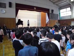 大学による外部派遣事業として、プロの声楽家とピアニストが来校してくださいました。指導を受けた6年生と特設音楽クラブの子どもたちは、美しい歌声に圧倒されたり、歌い方のコツを教えていただいたりして、とても有意義な時間を過ごすことができました。。