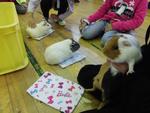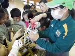 野毛山動物園から出張動物園が来てくれました。モルモット、ハツカネズミ、ニワトリの3種類の動物たちに実際に触れて観察し、気づいたことを発表し合いました。子どもたちは細かいところまでよく観察し、とても熱心に参加していました。