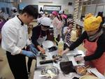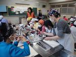 5年生は味噌汁づくりに挑戦です。煮干しで出汁をとる本格的な味噌汁です。大根やネギを慣れない手つきで切り、苦労してできた味噌汁は格別おいしかったことでしょう。 サポートしてくださった保護者の皆様ありがとうございました。