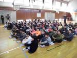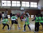 南吉田小学校ではいろいろな国の遊びやスポーツを体験する集会を年2回開いています。今回はインド発祥の「カバディ」を南吉田風にアレンジした「みなディ」を体験しました。「みなディ みなディ」と連呼しながら相手の陣地に入り腰につけたタグを奪い合うゲームです。大寒の季節ですが、体育館でホットな戦いが繰り広げられました。