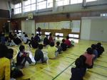 年度始めに新しい地区班名簿を確認し、正しい通学路や登下校の約束を知るために登校班会議を行いました。1年生や、転入生も含めみんなが安全に登下校するために学校では定期的にこうした会議を行っています。各班の班長さんが迷子にならないように1年生を迎えに行って、班ごとの教室に連れて行きます。そして名前を呼んで班のメンバーを確認します。こんなところでも上級生が下級生をリードしてくれています。補助に入っていただいた育友会、保護者、地域の皆様ありがとうございました。