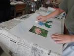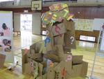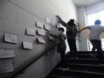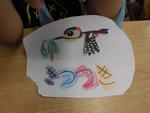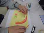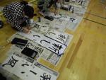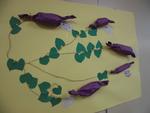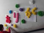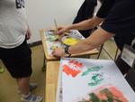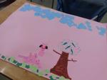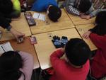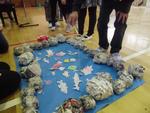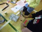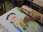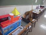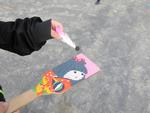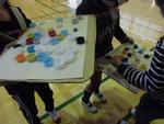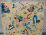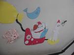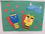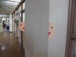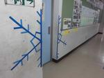 5年生が学校のお気に入りの場所をあるものに見立てて造形作品づくりに取り組んでいます。階段の手すりをゲレンデに見立てて雪だるまをおいて見る子、水色の壁を海の中に見立てて魚を貼り付ける子などアイデアが広がります。学校のあちこちにアート作品が出現です。