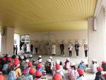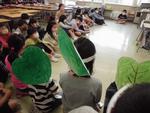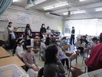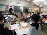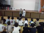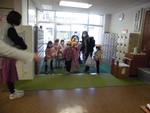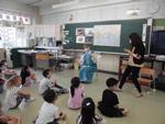 国語の教材に「おおきなかぶ」という物語があります。昔から教科書に載っている教材なのでご自分が小学生の時に読んだという保護者の方もいらっしゃるかもしれません。もともとはロシアのお話なので、ロシア語での読み聞かせを区役所にお願いしたところ、みなみラウンジが講師を紹介してくれました。ロシアの民族衣装を着てロシア語で「おおきなかぶ」を読んでもらい子どもたちは大喜びです。「うんとこしょ、どっこいしょ」のくだりはロシア語で声をそろえて読みました。ご協力いただいた皆様ありがとうございました。。