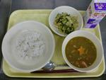 今日の給食は横浜ベイスターズの青星寮カレーでした。プロ野球のベイスターズの選手育成寮で出されているカレーと同じレシピで作った献立で子どもたちに人気のメニューです。給食室のスタッフがニンジンを星形にカットして提供してくれました。