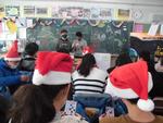 立春の今日は恒例の放送集会からスタートです。とんちクイズが出題されテレビの前の子どもたちは??。答えを聞いて「あ~そうか」と手をたたく子、意味が分からずキョトンとする子、爆笑する子と反応も様々です。集会委員の人たちが少ない人数でアドリブを入れて頑張ってくれました。馬のお面をかぶったりサングラスで登場したりするこりようです。