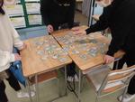 6年生の社会科では学習のまとめに歴史ビンゴクイズをしています。これまでに習った歴史的事項や人物、遺跡などの名前をマス目に書いてビンゴに挑戦です。学習内容を楽しみながら復習できて大好評です。