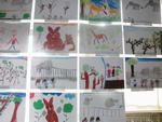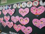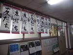 1年生の教室の前には入学したての頃に書いた自分の名前と、もうすぐ2年生になる現在書いた名前が写真入りで並べて飾られています。去年の4月には上手に書けなかった名前が、今ではしっかりと力強く書けるようになりました。写真を見るとすっかり小学生の顔になっています。1年間でいろいろなことができるようになりました。