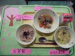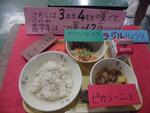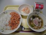 ほっとして教室に帰るとお赤飯の給食が待っていました。一足早いですが給食献立でも子どもたちの門出を祝っています。