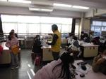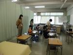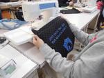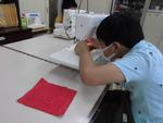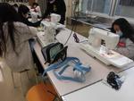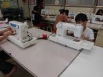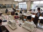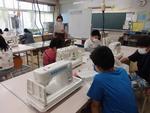 6年生の家庭科はナップザックづくりです。感染予防対策で密を避けるためクラスを半分にして交代でミシンで製作します。素敵なザックができています。