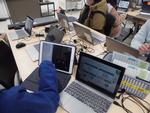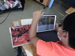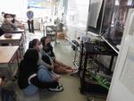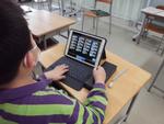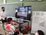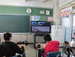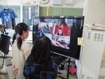 画面にかじりつく6年生 身を乗り出して見る6年生