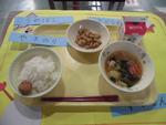 1月24日~1月30日まで全国学校給食週間です。日本の学校給食は明治22年に山形県鶴岡市で始まり全国各地に広がったとされています。戦争による中断があり、再開されたのは昭和22年でした。そして昭和25年から、学校給食に感謝しその意義や役割について理解を深める趣旨で「学校給食週間」が設けられました。(文科省HP)今日の献立は最初の給食で提供された「おにぎり」にちなんでセルフおにぎり(ごはん 梅干し 焼きのり)でした。
