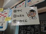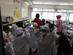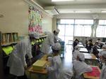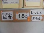 給食室の前に各クラスから募集した「給食の18の質問」が貼り出されています。「南吉田の給食が始まったのはいつから?」「一番残りが少ない献立は何?」「一番よく出される献立は何?」など素朴な疑問が並んでいます。ちなみに残食が少なかった献立は「ビビンバ」年間通して一番多く出される献立は「カレー」だそうです。一番長い名前の献立は「はま菜ちゃんの肉団子スープ」でした。今日の「きつねうどん」は残さず食べられましたか。給食委員のみなさんお疲れ様です。