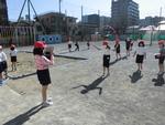 先週末から気温が上がり、日差しに勢いが感じられるようになってきました。今日も春の陽気に誘われて1年生が縄飛びを頑張っていました。ここでも跳ぶ姿を動画に収めるためにタブレット端末が活躍しています。