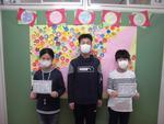 今年度最後の朝会でたくさんの子どもたちを表彰しました。市書写点、市図画工作展、ボイスオブユースに出品し優秀な成績を収めた子、冬休み明けのMY漢字検定、MY算数検定で1級をとった子(代表)です。各方面で実力を発揮した子どもたちに拍手です。