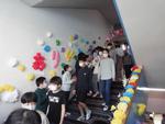 卒業式まで3日となった6年生の教室前~昇降口にかけて5年生がお祝いの飾り付けをしました。忙しい中でも心を込めて素敵な飾りを作ってくれた5年生ありがとうございました。