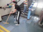 会場の掃除は5年生が頑張りました。体育館の床をピカピカにし、昇降口をきれいに掃いて、廊下・階段は水拭きです。子どもが帰った体育館では職員が総出で式場づくりです。こうして明日の準備が整っていきます。明日の卒業式が楽しみです。