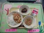 送る会の後でペア学年の1年生から手紙を渡され、とても嬉しそうに教室に帰る6年生でした。4校時終了後には最後の給食です。麻婆豆腐、中華和え、黒蜜かんの南吉田独自献立は子どもたちの大好きな給食です。
