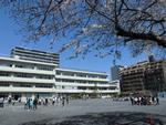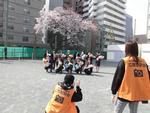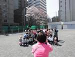 式の終わりには、桜の下で育友会広報委員さんによる記念撮影です。