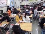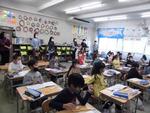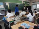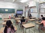 5時間目には3年生が上海日本人学校とオンラインで学習をしました。「わたしたちの学校じまん」という単元があるのですが、自分たちだけで学校自慢をしてもしかたないので、他校とオンラインで結んで自慢しようという趣旨です。たまたま日本人学校に勤めていた担任が上海に呼びかけたところOKをもらえたので実現しました。子どもたちはいつになく真剣な表情でカメラの前に立っていました。来週は国内の別の地域の学校とオンラインで結んで交流する計画があるようです。