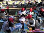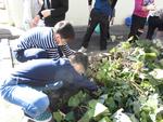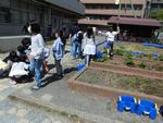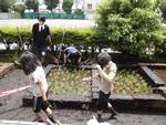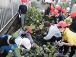 連休の谷間の金曜日、気温が上がり校庭で体育をしている子どもたちは「暑い!」を連発しています。花壇の草むしりをする2年生も暑そうです。6組の子どもたちが給食の野菜くず’(にんじんの皮や菜っ葉の芯など)を肥料にして夏野菜の栽培に取り組みます。今日も野菜くずを小さく砕いて堆肥作りをしました。ゴミの減量にもなり一石二鳥の取組です。きっと立派な野菜ができることでしょう。