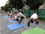 3年生が体育館でマット運動、4年生が校庭で鉄棒運動に取り組んでいます。体育には体つくり運動、器械運動、陸上運動、水泳運動、ボール運動、表現運動と保健領域の学習があります。体のいろいろな部位を動かし、器具やボールを使って様々な動きを経験し、生涯にわたって心身の健康を保持増進し豊かなスポーツライフを実現するための力を身に付けていきます。