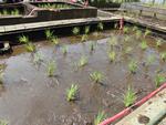 5年生が学校田んぼで米作りにチャレンジします。山形県のJA(農協)から直送していただいた苗を植え付けました。秋には美味しいお米ができるとよいですね。