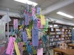 図書室に七夕飾りが登場しました。図書館司書が自宅から自転車で運んできてくれました。子どもたちが早速短冊に願い事を書いて飾っています。「早くコロナが収まりますように」という切実な願い「友だちとずっと仲良くできますように」という小学生らしい願い。「将来の夢が叶いますように」という大きな願い。中には「1兆円ほしい!」という破格な願いも。また掲示板には広報掲示委員が書いた「キラキラ新聞」が貼られています。七夕特集号で七夕の由来などが書かれています。みんなの思いや願いを載せて今年も7月7日がやってきます。晴れたらいいね!