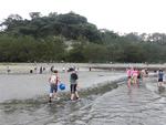4年生が野島体験学習に出かけました。本来なら宿泊体験をするのですがまん延防止等重点措置が出ているために日帰りでの実施です。午前中ははまぎんこども科学館で科学の遊び体験とプラネタリウム見学をしました。遊び体験はグループ行動でしたが貸し切り状態だったのでゆっくりと仲良く体験できました。プラネタリウムは2座席間を空けて座ってこちらもゆったりと鑑賞できました。お弁当を食べた後は野島公園で海の体験です。干潮に合わせて干潟に入り生き物観察です。カニ、ヤドカリ、二枚貝、小魚などたくさん捕まえて大喜びな子どもたちです。野島海岸も貸し切り状態で心ゆくまで海の体験ができました。日帰りでしたが、全体にゆったりと活動できました。子どもたちはバスの中ではお話をせず、お弁当ももちろんしゃべらず、よく約束を守って活動できました。最後の解散式も疲れていましたが立派な態度で参加できました。夕方の時間にお迎えに来ていただいた保護者の皆様ありがとうございました。