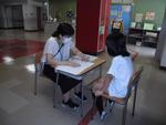 梅雨明けはまだですが晴れた日には気温が上がり、熱中症の危険度を測るWBGT計の指数も警戒レベルに上がります。学校では昇降口に熱中症注意情報板を出して注意喚起しています。体育の時間などに息が上がる運動をするときには人との距離に留意しながらマスクをはずすように指導しています。これからますます暑くなります。放課後や夏休み期間に熱中症にかかる危険もありますので、帽子着用、水筒携行、エアコンの適切な使用など夏の過ごし方についてご家庭でもぜひ話題にしてみてください。