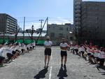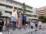 企画運営の5年生運営委員とお礼の言葉を述べる6年生代表