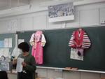 2年生は昨日の馬頭琴の演奏に続きモンゴルの先生による国際理解教室です。モンゴルの国の紹介や遊び体験、民族衣装も見せてもらいました。「スーホの白い馬」の世界が広がっていきます。