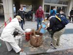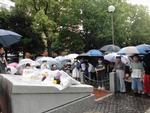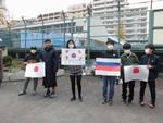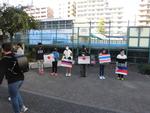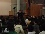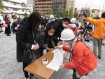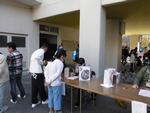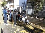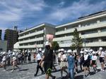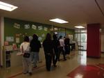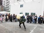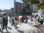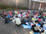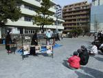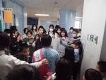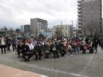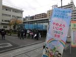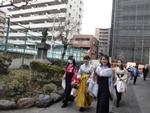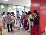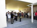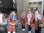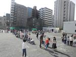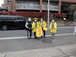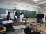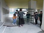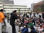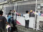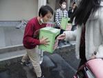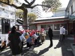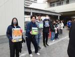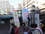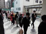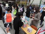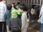 早々に子どもたちは下校し入学式の準備です。新6年生があちこちに立って案内をしたり、中国語で通訳したりして新入生をお迎えします。正門前では「交通安全母の会」の皆様が旗を持っての見守りです。