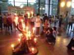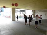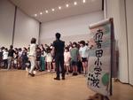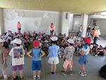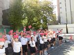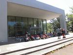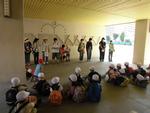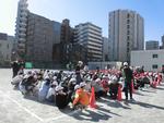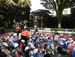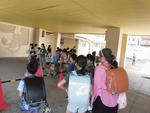 その頃ピロティでは遠足に出かける2年生が出発式をしていました。実行委員さんのリードで合い言葉を唱え、一緒に行ってくださる保護者ボランティア、育友会広報委員さんを紹介します。電車の中での約束事などを確認し出発です。