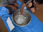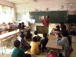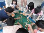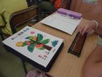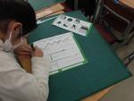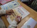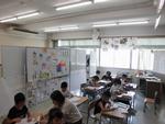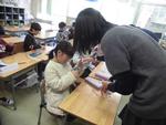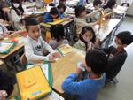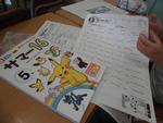 1年生はといえばひらがなの学習です。今日は「く」の文字を習っていました。算数の時間にはブロックを使いながら数の学習が始まっています。張り切ってお勉強する1年生、さすがは小学生です。