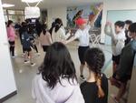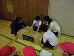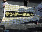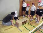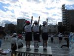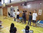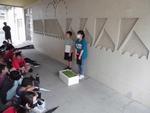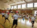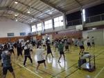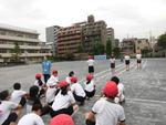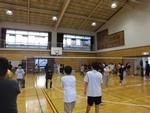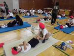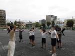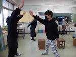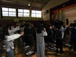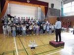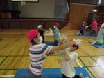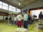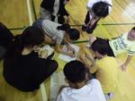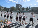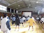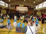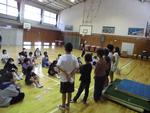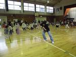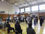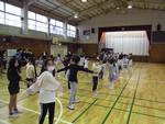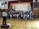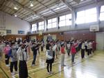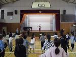 南区制80周年を記念して3年生がつくっていた「サンダー体操」の完成披露パーティーを行いました。もともと真金町第一町内会の脳トレイン真金(健康体操)に参加している方と一緒に体操づくりを進めていましたが、このほど体操が完成したので、地域の方々を招待して披露しました。運動会応援歌のBGMに合わせて、顔、首、肩、腕、腰・・・と体の各部位を回したり伸ばしたりします。最後には全員で一緒に体操して笑顔で終了です。地域の方々からは「こんな立派な体操になったとはビックリしました」「みんなから元気をもらいました」「この体操をして元気にすごしたいです」などの感想をいただきました。町内会長さんからは「金メダルよりうえのダイヤモンドを贈りたいです」とのお言葉をいただきました。ご参加いただいたみなさん、ありがとうございました。