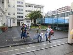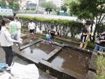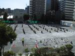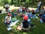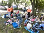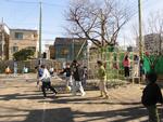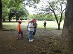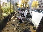 会長さんのお話を聞いたあとで、公園清掃を行いました。