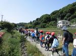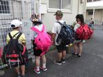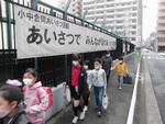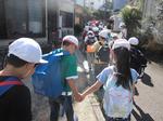 週明けの月曜日、多くの保護者や地域の方に見守られて、子どもたちは1年生を間に挟むようにして登校班で登校します。