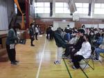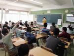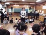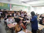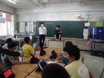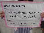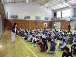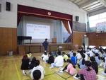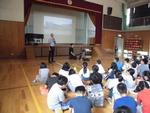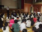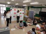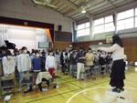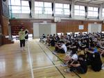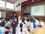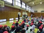 神奈川県くらし安全交通課の指導員の方をお招きして、1年生が登下校時や外出時に自分の身を守る方法などのお話を聞きました。不審な人に出会ったら「あいさつ」「はっきり断る」「はなれる」「にげる」とよいことを、クイズやロールプレイで学びました。子どもたちは「自分の安全やいのちを守るお話だ」としっかりと話を聞き、問いかけにも元気に反応していました。